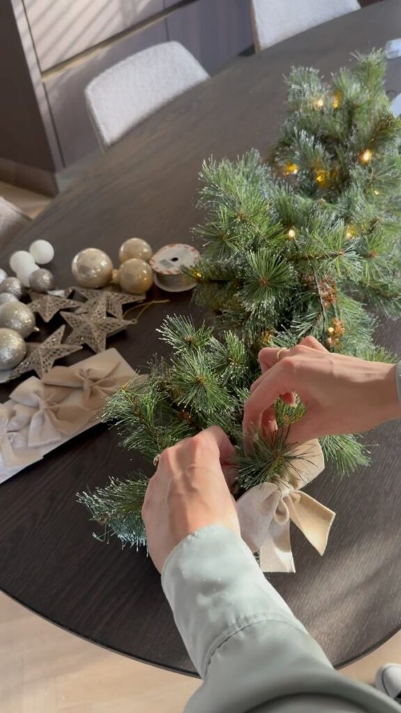 Potom ju rovnomerne obtočte jemnými svetielkami. Následne prichádza na rad zdobenie. Použite rovnaké alebo podobné ozdoby ako na venci či vianočnom stromčeku. Celý priestor tak zladíte do jednotného sviatočného štýlu, ktorý pôsobí harmonicky a premyslene.