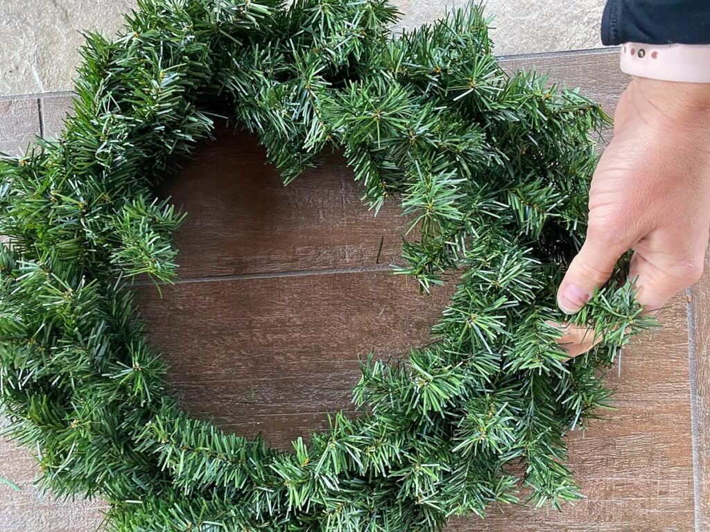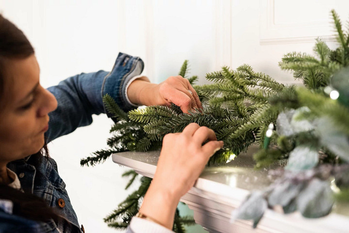 Skôr než sa pustíte do samotného aranžovania, položte veniec alebo girlandu na rovnú plochu. Vetvičky jemne nadvihnite a rozprestrite.