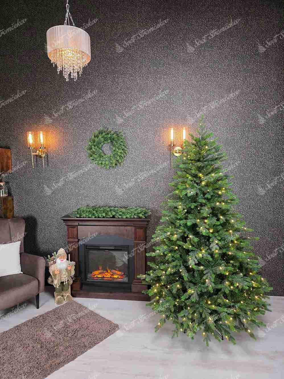 Stromček má priamo vo vetvičkách predmotané LED osvetlenie v teplom bielom odtieni s 8 funkciami svietenia. To zabezpečuje rovnomerné rozloženie žiaroviek a preto je skvelou voľbou pre tých, ktorí chcú vytvoriť krásnu vianočnú atmosféru bez námahy s strácania času.